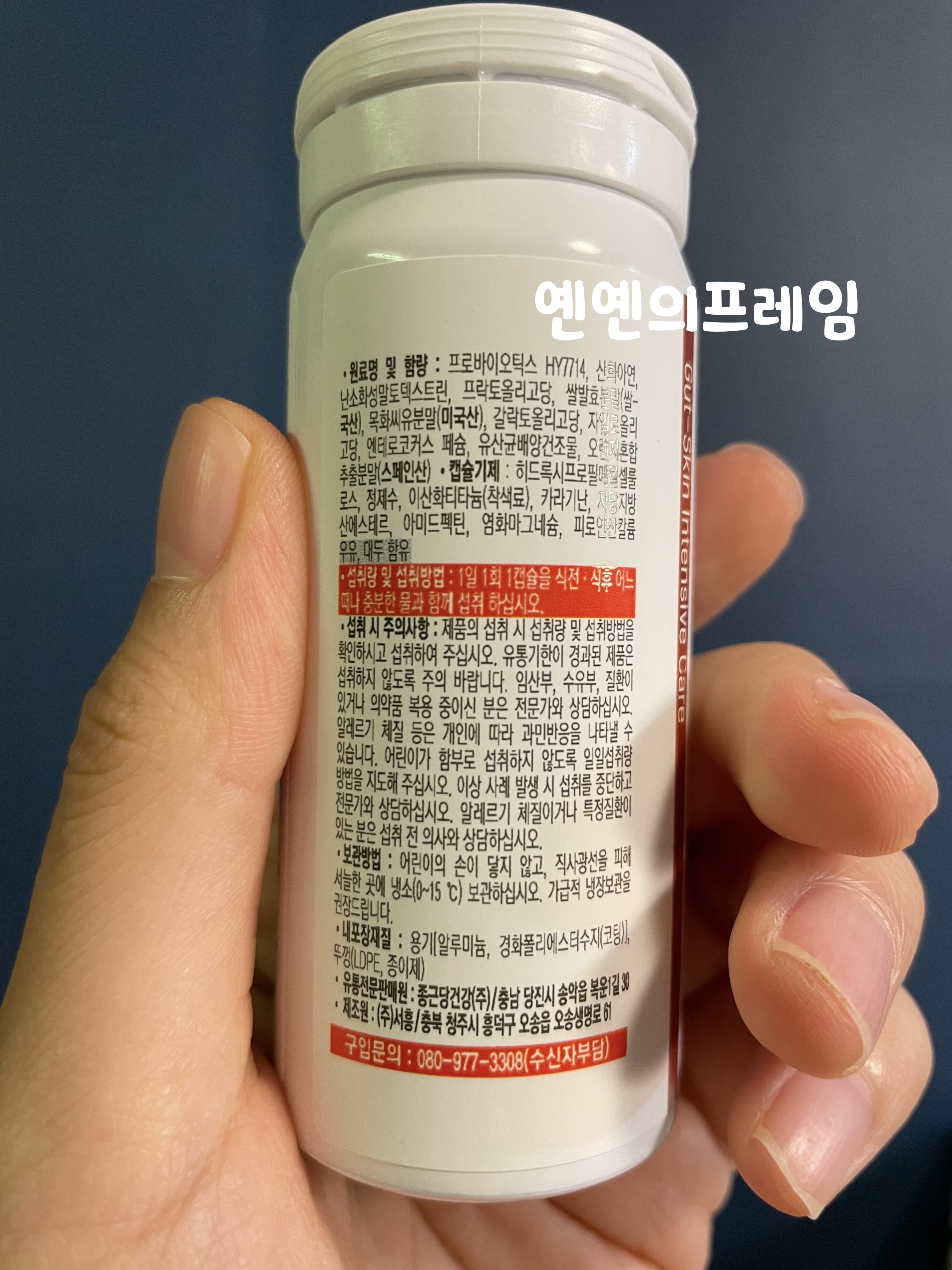 - 섭취 방법: 하루에 한알씩 충분한 물과 섭취.
