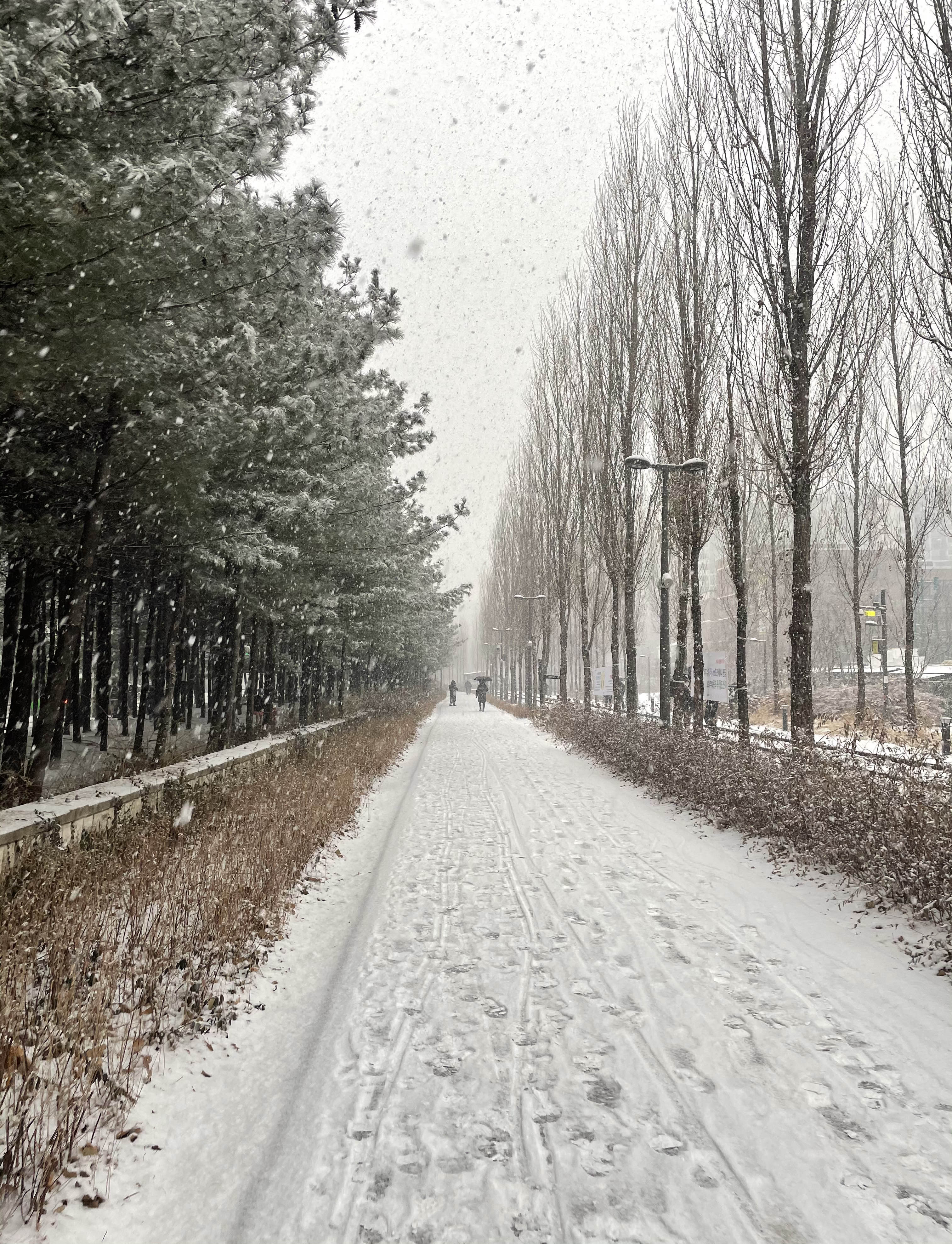오랜만에 눈오는 길을 걷고, 느낄 수 있어 감사한 하루.