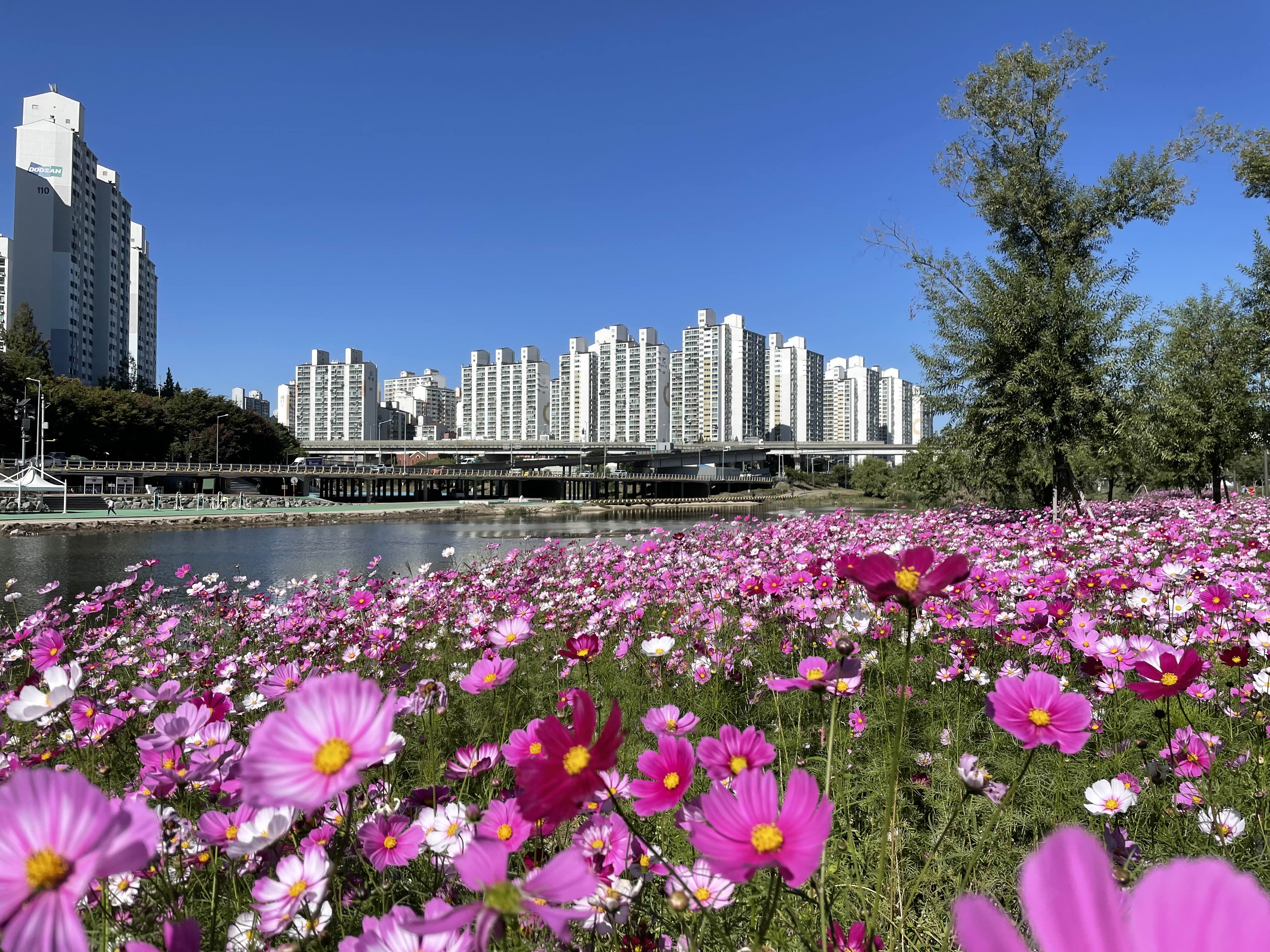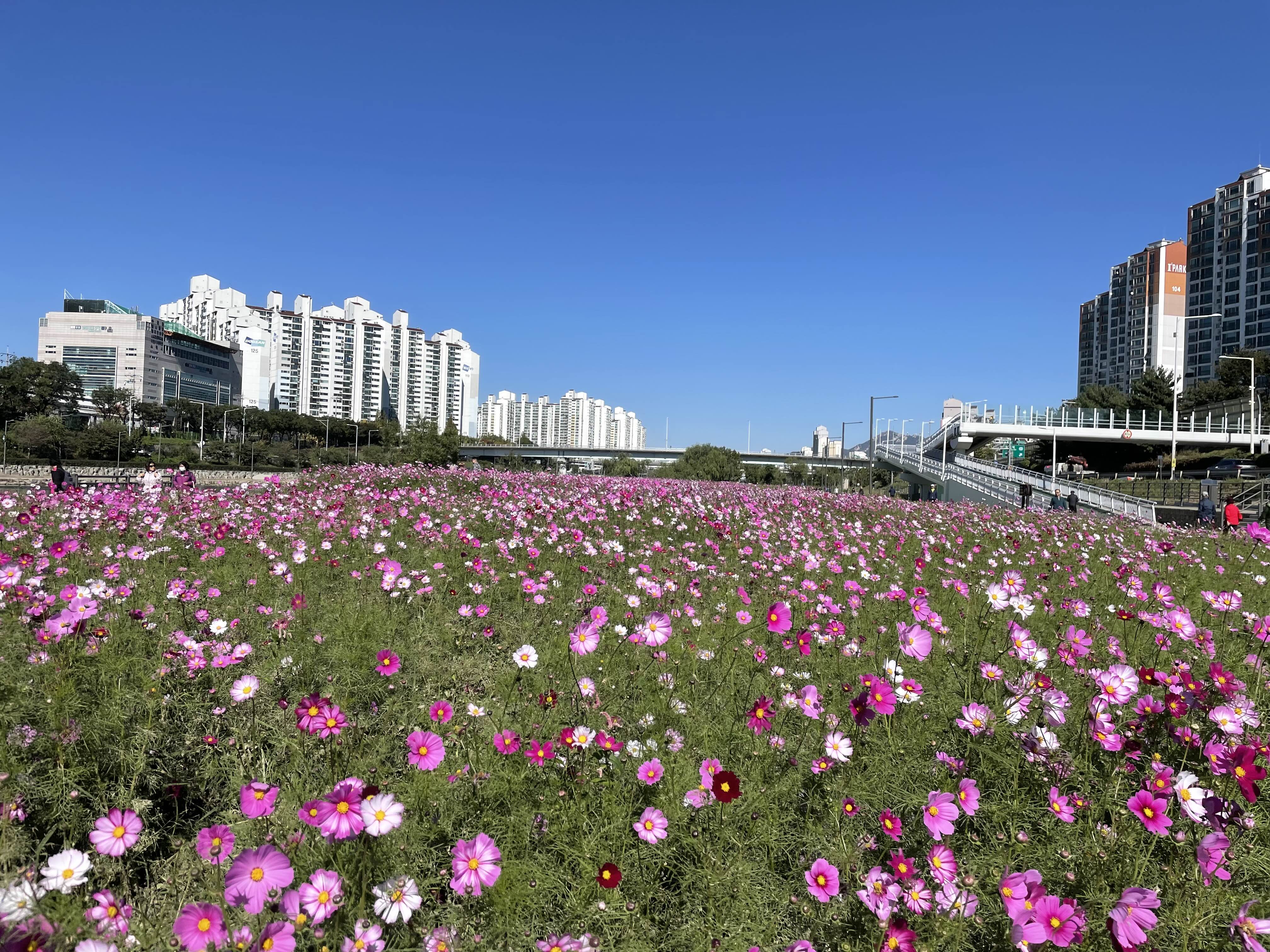 중랑천이 코스모스길이 되었다.