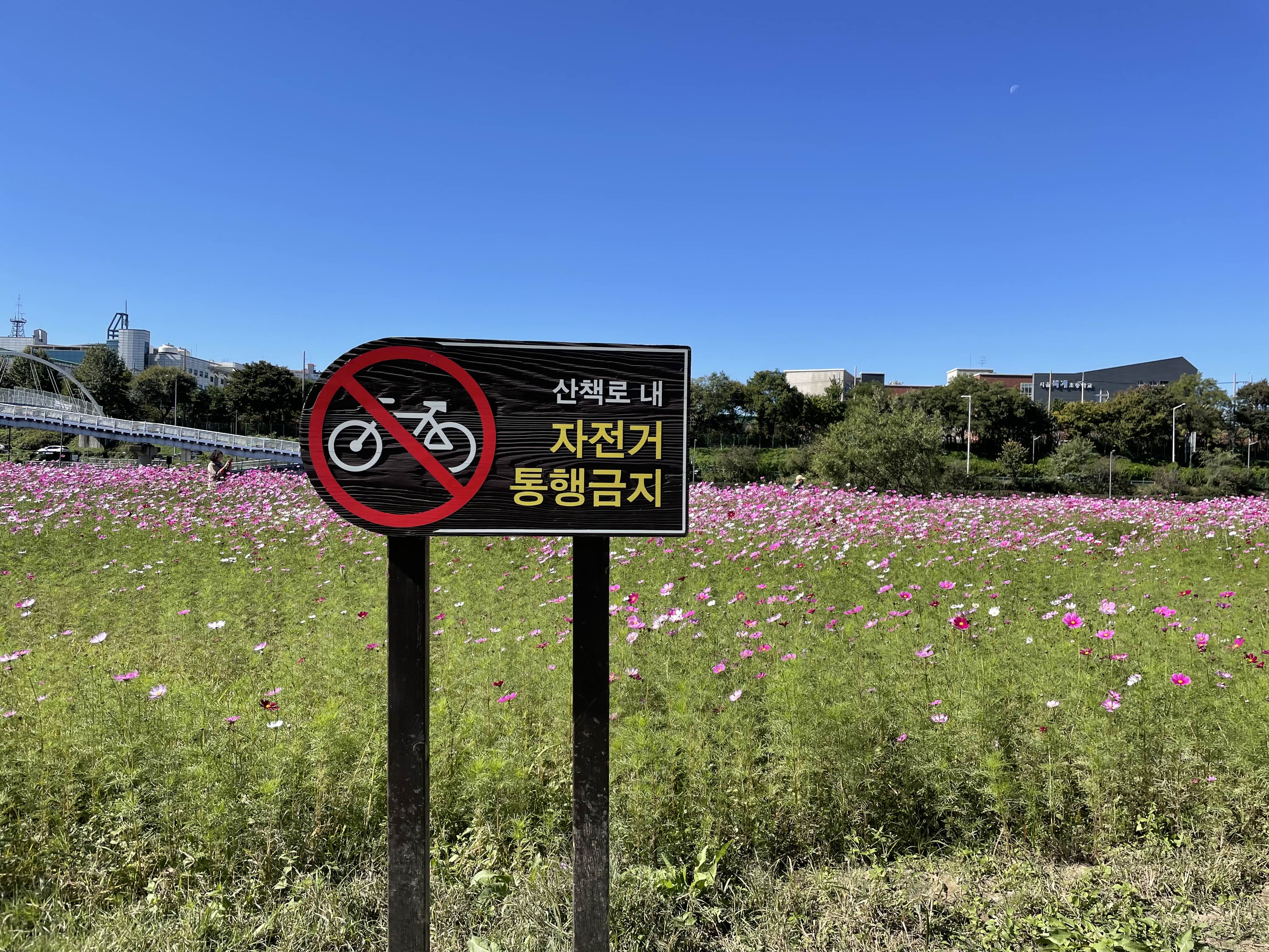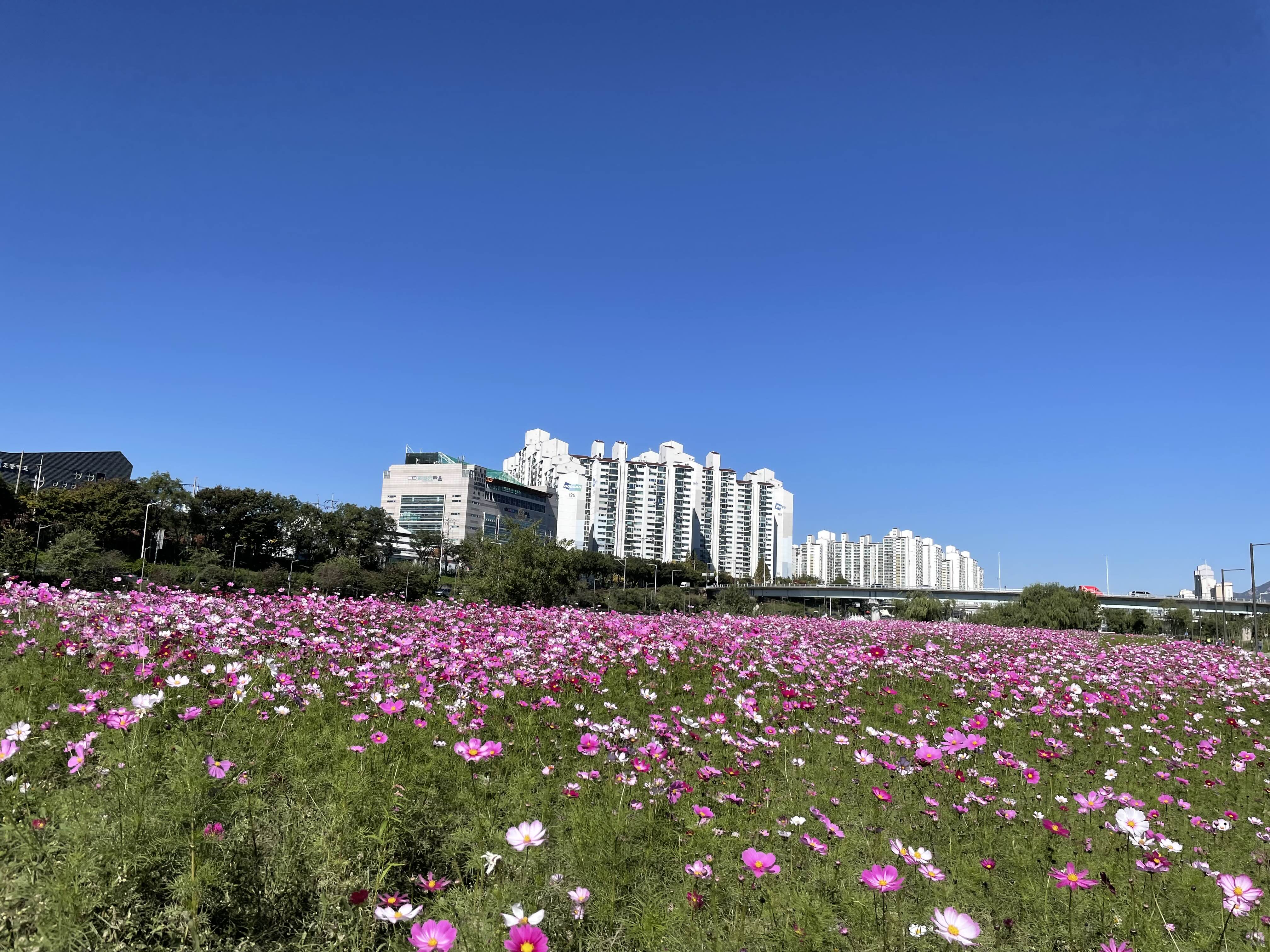 코스모스는 장미 둑길 옆에 조성되었고, 역에서 도보 15분 정도 걸린다. (태릉입구역 8번 출구)