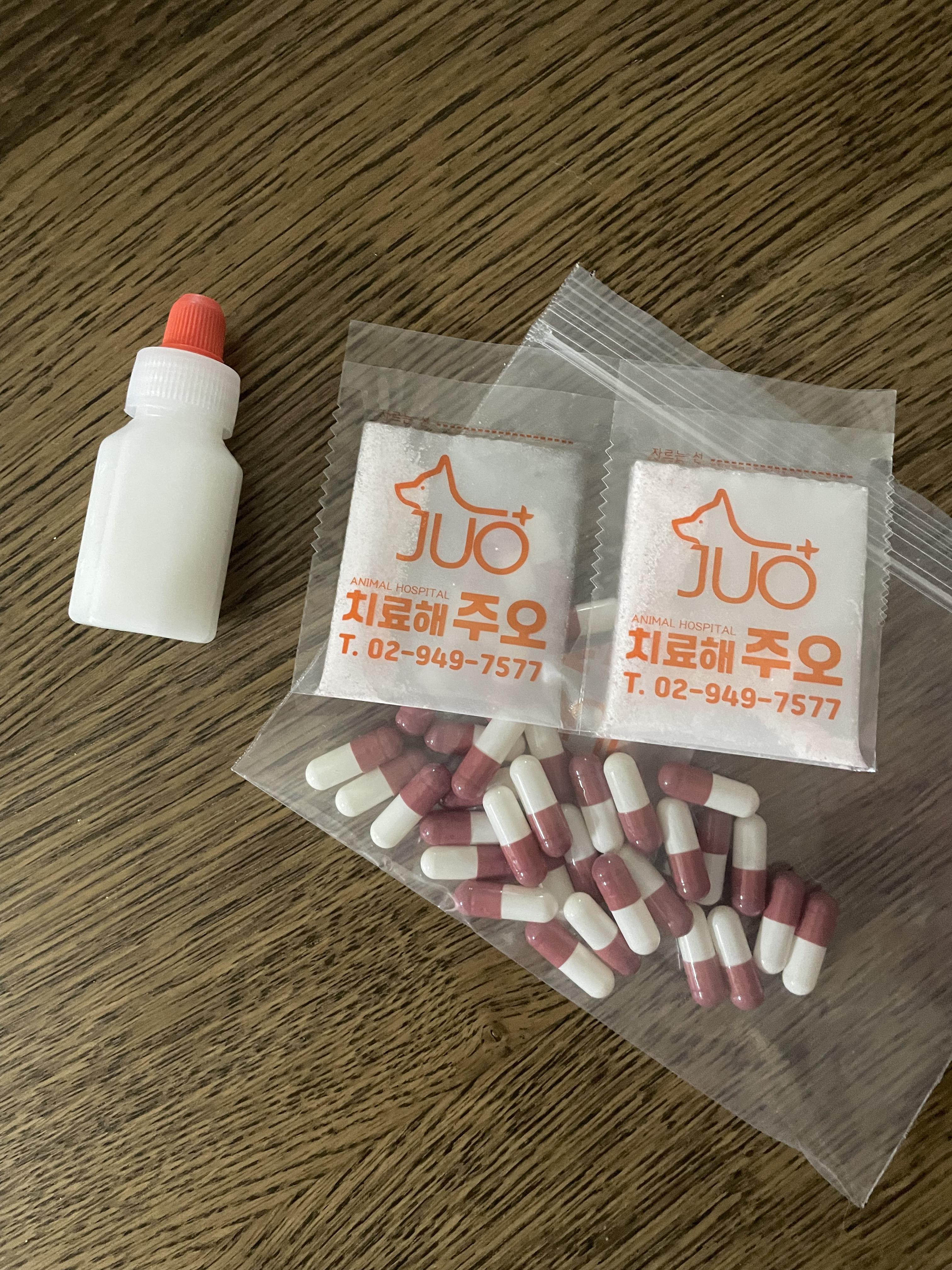 시럽은 동봉된 주사기를 통해 급여했고, 가루약은 알약에 직접 넣어서 츄르와 함께 주었다.