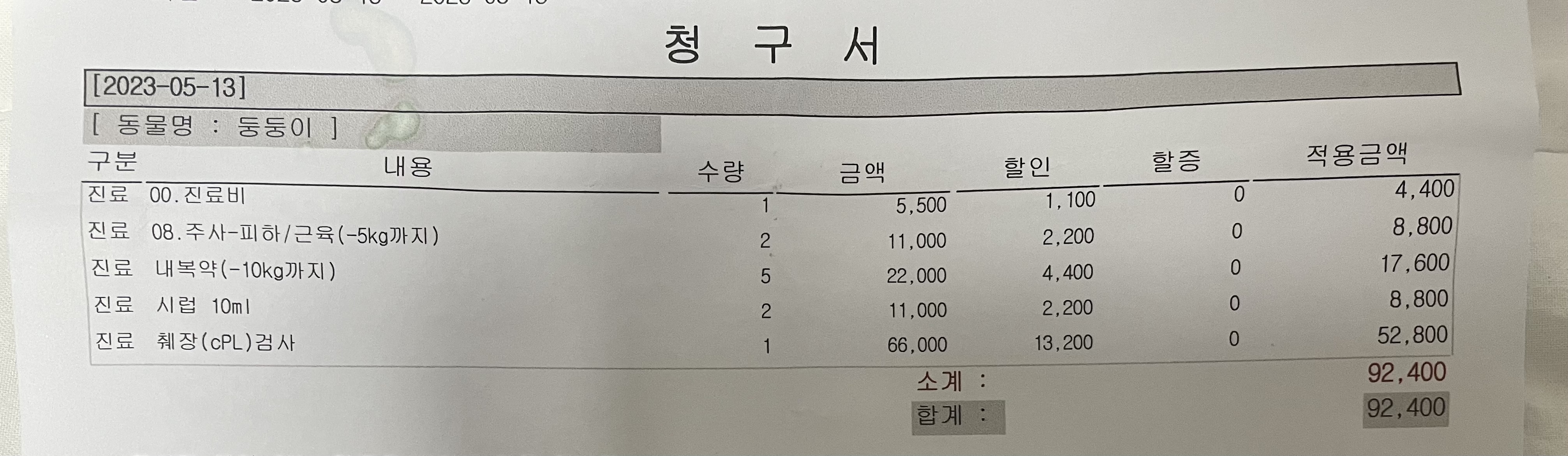 적지 않은 금액. (아마 췌장에 이상이 있었다면 훨씬 많은 비용이 들었을 것이다.)